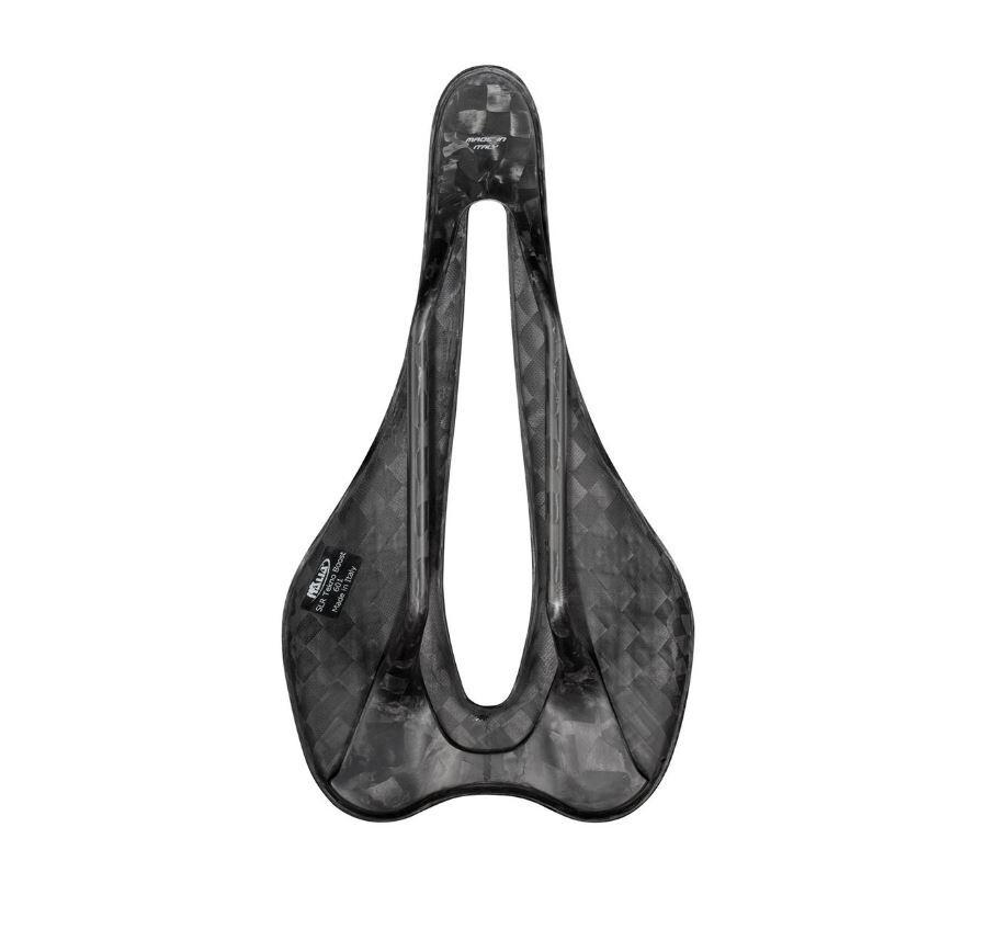 O padrão em fibra de carbono confere ao selim um visual premium e tecnológico — a combinação ideal entre tradição e inovação Selle Italia.