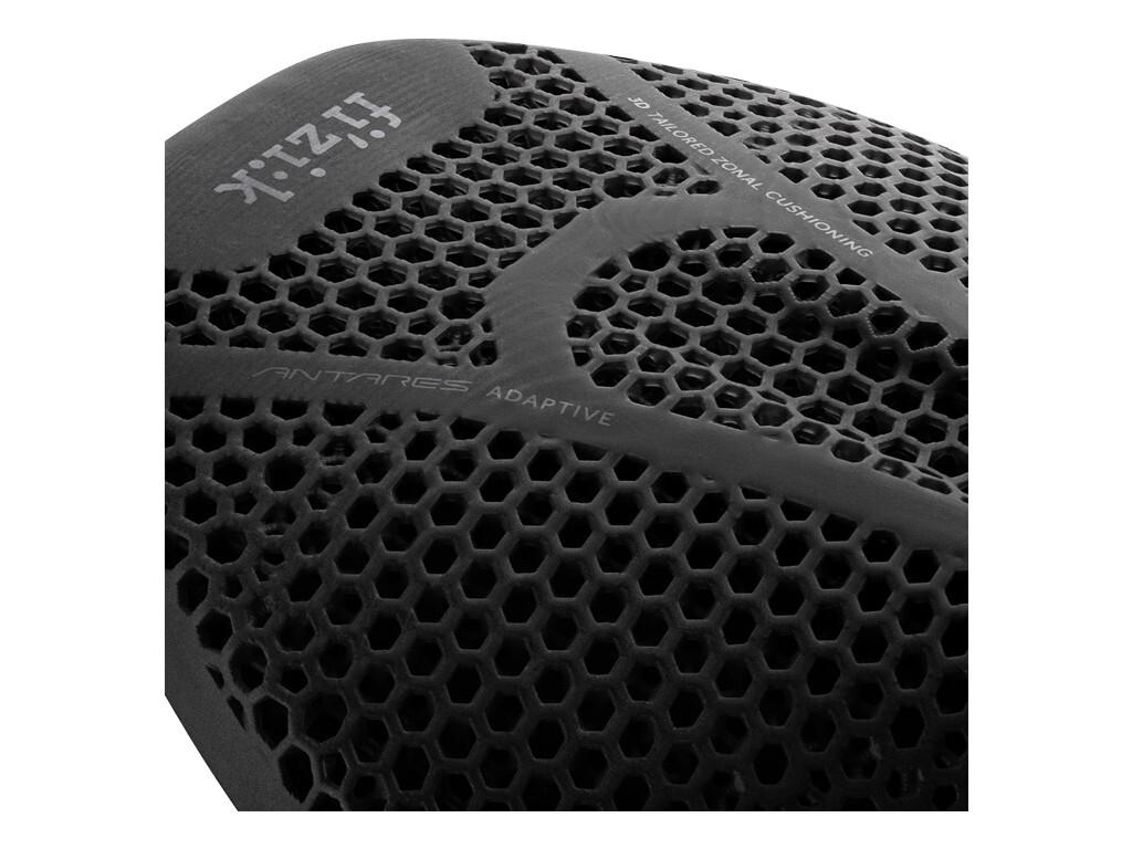 O Fizik Antares Adaptive Vento R1 combina o formato aerodinâmico da linha Antares com a revolucionária tecnologia de impressão 3D Adaptive. Este selim oferece suporte preciso e conforto progressivo, mantendo uma excelente transferência de potência graças aos carris em carbono de alta rigidez e ao seu perfil de baixa altura.